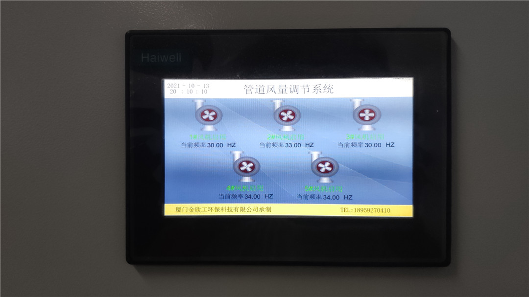 智能化運(yùn)行管理設(shè)計(jì):一個(gè)電控箱控制5套收集排風(fēng)系統(tǒng),5臺(tái)變頻器根據(jù)所需調(diào)頻,任意一套系統(tǒng)任意一臺(tái)設(shè)備排風(fēng)啟動(dòng),風(fēng)機(jī)啟動(dòng)收集排風(fēng);根據(jù)設(shè)備排風(fēng)系統(tǒng)的隨意啟閉,各套系統(tǒng)根據(jù)功效所需,將風(fēng)機(jī)自動(dòng)調(diào)頻,無需人工管理,且在手機(jī)和電腦端即可看到系統(tǒng)運(yùn)行狀況。
